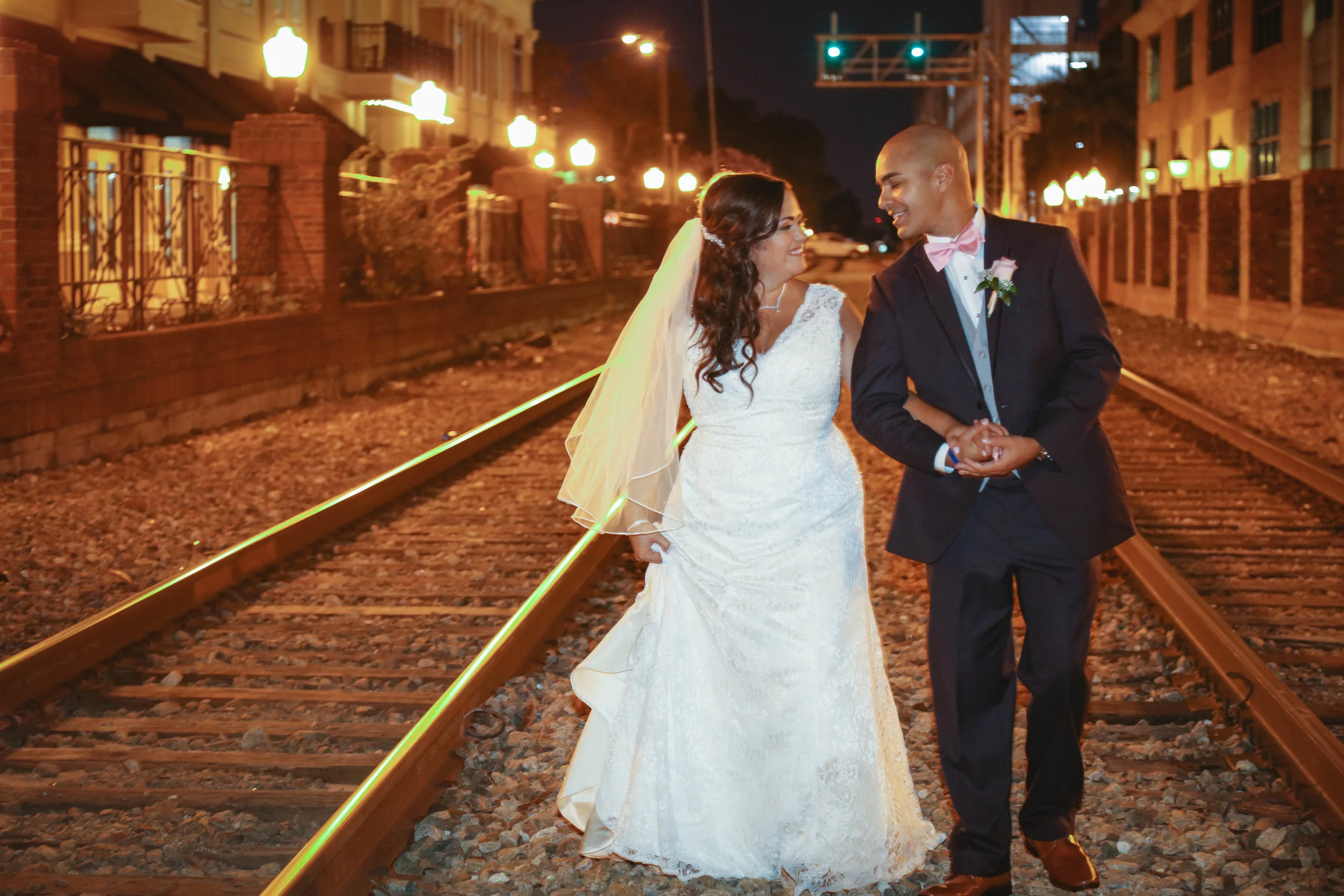 happy relationships, wedding, downtown orlando, wedding photo, railroad, bride, groom